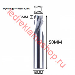 Фреза для НЕОН 2,0 ( 6 мм - 4,2 *10 D*50 L 6 * 1.2 * 8 * 1.3 * 1.3 ). Для изготовления неоновых вывесок.