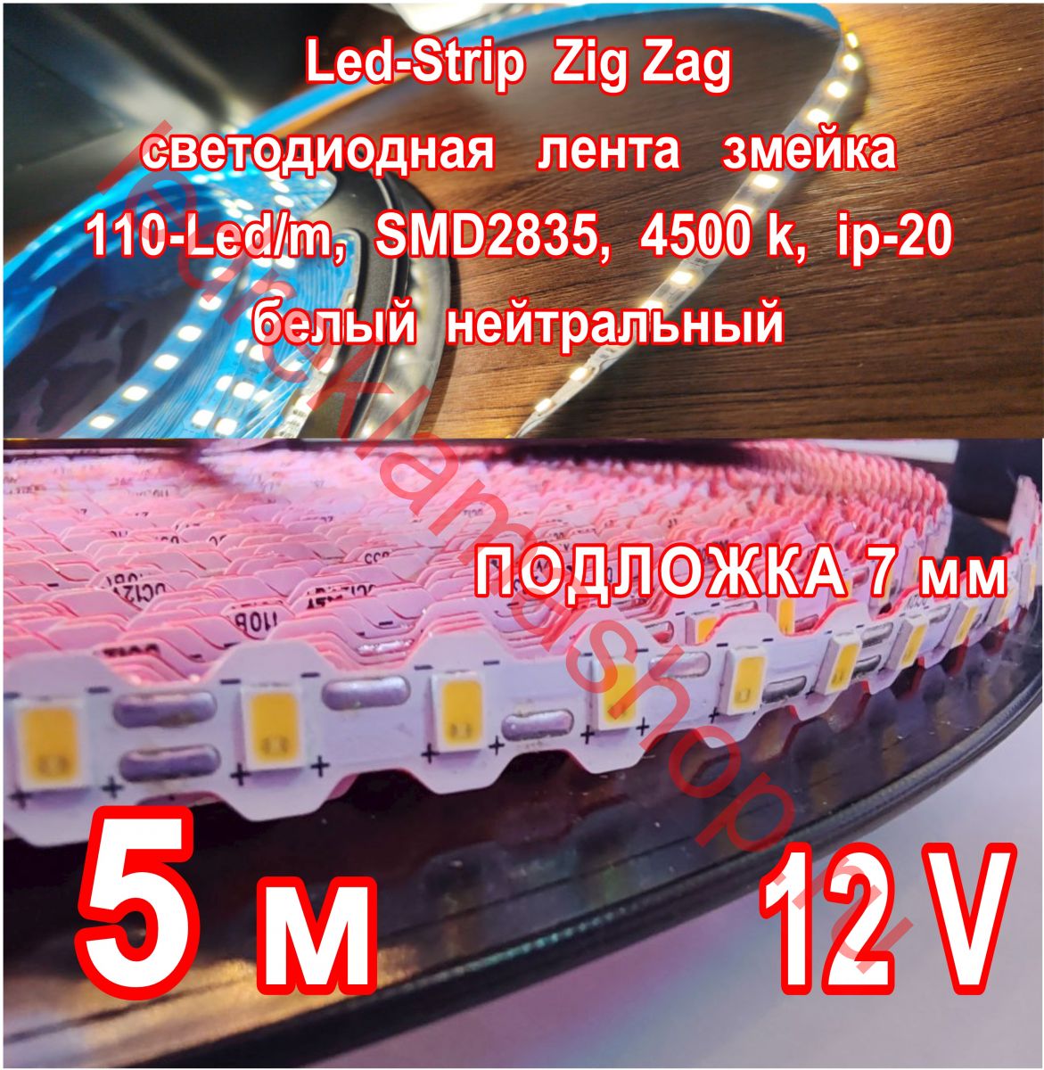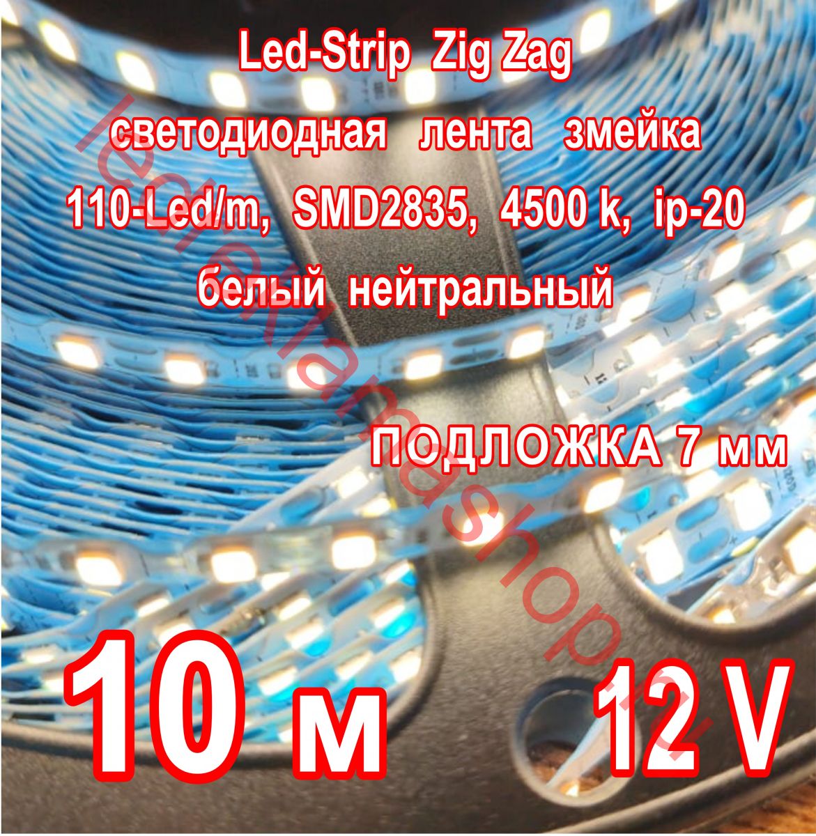 Описание Zig Zag светодиодная лента ЗМЕЙКА, 12 V, 6.48 W/м, 110-LED/м, подложка 7 мм, БЕЛЫЙ НЕЙТРАЛЬНЫЙ, 4500 k, 5 м
